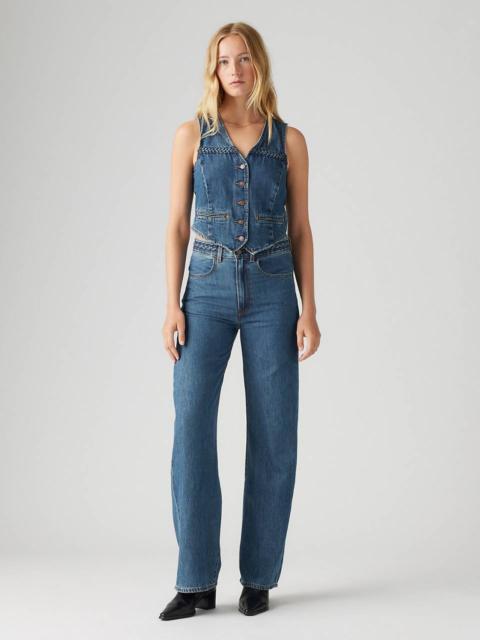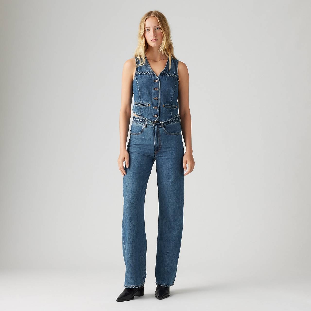 As if our Ribcage jeans couldn't get any better—meet our Ribcage Wide-Leg Braided jeans. The tailored, leggy look of the '70s and a '90s-inspired super high rise come together to create the perfect proportion to show off the rise and define your waistline. With a soaring 12-inch rise and a braided waistband, they're about to become your waist-defining, leg-lengthening obsession. - Our Ribcage jeans you know and love, now with a wide-leg cut - Made with a super high rise - Fitted seat and slim leg from thigh to knee for uncompromising comfort - Finished with a braided waistband Style # 001US0000 Color: Big Yikes - Dark Wash How it Fits - Slim Through The Hip And Thigh - Super high rise: 12" - Wide leg - Inseam: 32",Leg opening: 22",Measurements based on size 27 waist Composition & Care - 100% Cotton - Denim - Non-stretch - Zip fly - Non 5 Pocket - Wash your jeans once every 10 wears at most; this increases their lifespan and saves natural resources.Machine wash cold, Do not bleach, Tumble dry medium, Hot iron if needed, Dry cleaning possible, Wash inside out with like colors - Made in Sri Lanka