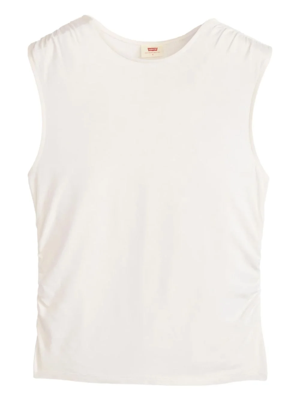 ruched-design sleeveless top Highlights - White - Ruched design - Round neck - Sleeveless Imported Composition Ecovero 94%, Elastane 6% Washing instructions Read Manufacturer Guidelines