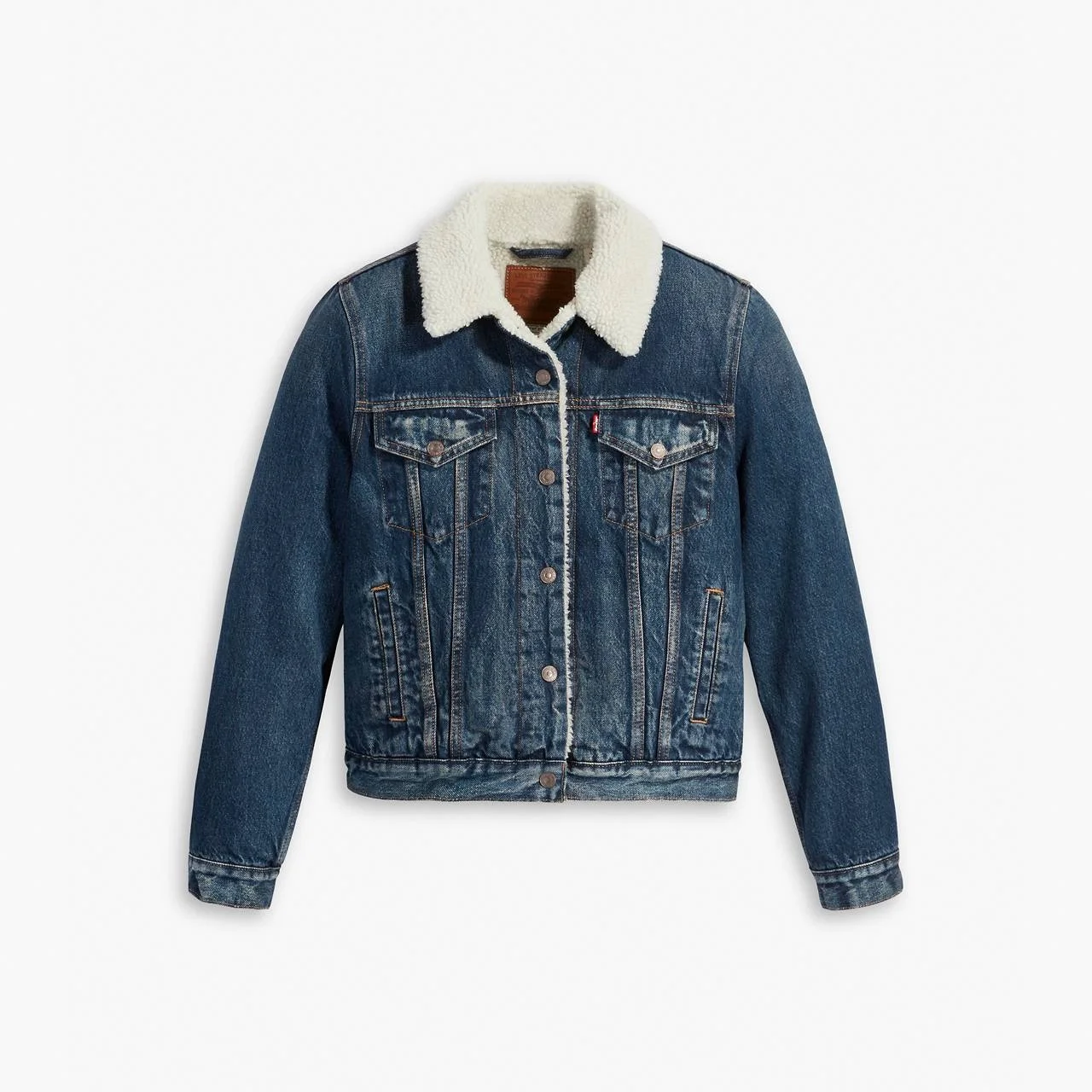 You can't go wrong with a classic. Take that classic and ready it for winter? Perfection. Our Original Sherpa Trucker Jacket is the cold-weather version of our timeless Trucker—featuring a cozy lining and collar to keep you warm in the chill. - Our timeless denim jacket, upgraded with a warm Sherpa lining - Soft quilted lining in sleeves - This iconic essential truly looks good on everyone, even when sized up or down - Levi’s® branded metal buttons and tapered “V” stitches make it instantly recognizable - Gets better over time from natural wear with fading, stains and holes Style # 361360063 Color: That New New - Dark Wash How it Fits - Slim fit Composition & Care - 100% cotton - Denim - Long sleeves - Machine wash cold - permanent press cycle, wash and dry with like colors, liquid detergent is recommended, dry cleaning possible, warm iron if needed - Imported