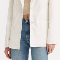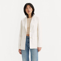Single breasted cotton blazer with button closure and center back venting. Laydown collar and two lower vent pockets. Style # 595450044 Color: White Composition & Care - 100% Cotton - Machine wash cold with like colors, delicate cycle , use only non-chlorine bleach when needed, tumble dry low, cool iron if needed.