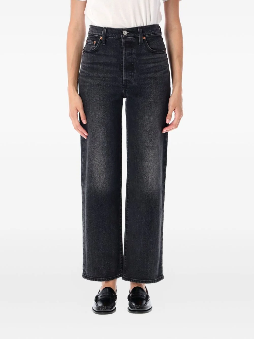 straight jeans Highlights - Black - Straight leg - High waist - Button fly - Five-pocket Imported Composition Cotton 99%, Elastane 1% Washing instructions Read Manufacturer Guidelines