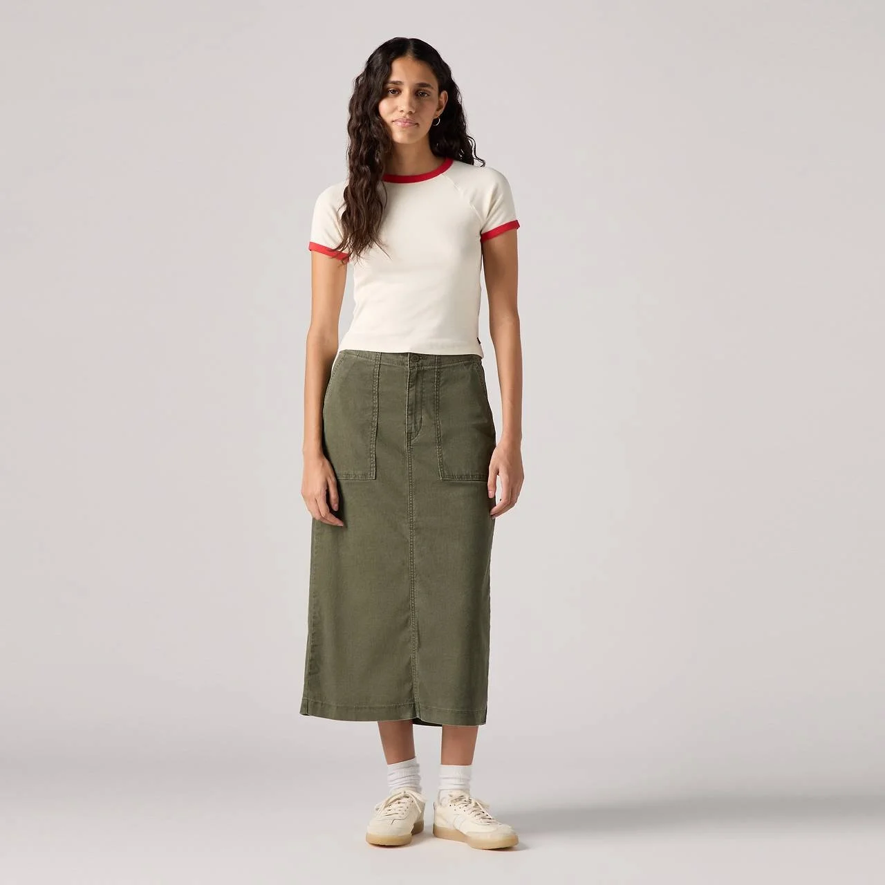 Utilitarian-inspired, made for now. Our Surplus Skirt was designed with a high rise, a relaxed fit and a touch of stretch for added ease. - A utilitarian-inspired skirt - Cut with a relaxed fit - Features a high rise - Woven with a hint of stretch Style # A86960002 Color: Ermine - Tan How it Fits - Easy Through The Hip - High rise: 31" Composition & Care - 98% Cotton, 2% Elastane - Canvas - Stretch - Zip fly - Non 5 Pocket - Machine wash cold, Do not bleach, Tumble dry medium, Warm iron if needed, Dry cleaning possible, Wash inside out with like colors - Made in Sri Lanka