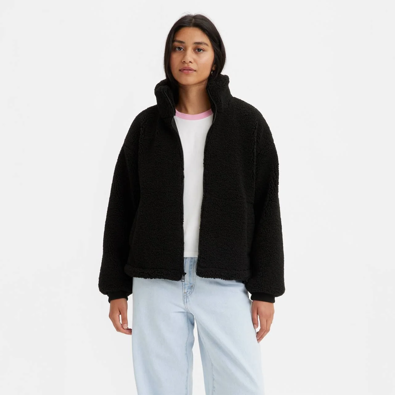 Throw on and go with Levi's Teddy Sherpa Jacket. Designed in an allover plush Sherpa, this outerwear piece is both cozy and comfortable for all day wear. - Allover plush Sherpa outer shell - Soft, rib knit cuffs for comfort - Stand collar adds additional protection against cold weather - Hidden, adjustable drawcord at waist gives a flattering, custom fit - Center front zipper closure for ease of wear - Two lower pockets offer ample storage Style # 595440174 Color: Black How it Fits - Classic fit Composition & Care - 100% polyester - Machine wash cold, tumble dry low - Imported