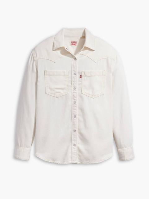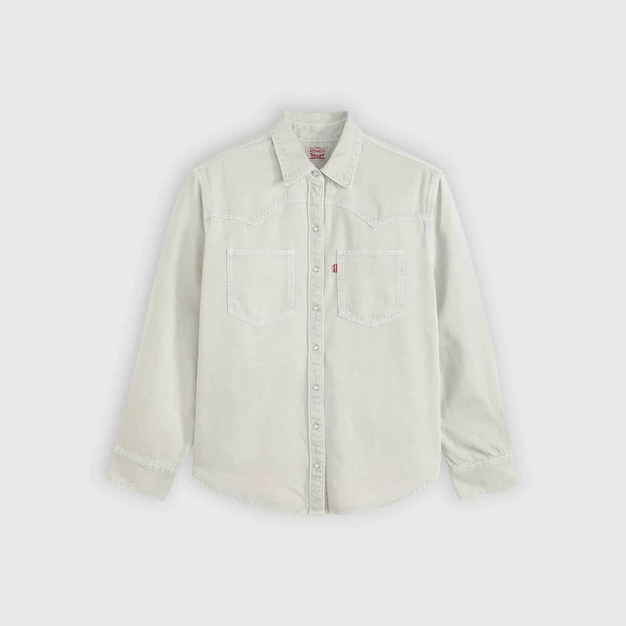 Cowboy boots not included. Our Teodora Western Shirt is a feminine take on a western staple, with a classic snap-button front, two patch pockets, a relaxed fit and a western-inspired yoke design. - A feminine take on a western staple - Cut with a relaxed fit - Features a classic snap-button front - Finished with western-inspired yoke detailing - Made with TENCEL™ Lyocell, a soft fiber sourced from wood. TENCEL™ is a trademark of Lenzing AG. Style # A72440065 Color: Spacey Quiet Gray - Grey How it Fits - Relaxed fit Composition & Care - 60% Lyocell (Lenzing TENCEL™ Lyocell), 40% Cotton - Tencel Cotton Blend - Point collar - Long sleeves - Imported