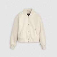 Channel a sporty, retro-inspired look with this cropped varsity bomber jacket, the perfect blend of style and comfort. Featuring a classic center front snap closure, this jacket adds a sleek, polished finish to your outfit. The two lower welt pockets provide functional storage, while the rib knit cuffs, hem, and collar offer a snug, flattering fit that enhances the jacket’s timeless appeal. Whether you’re dressing up a casual outfit or adding a sporty touch to your wardrobe, this cropped varsity bomber is sure to make a statement wherever you go. Cropped Varsity Design: A trendy, retro-inspired silhouette that adds flair to any look. Center Front Snap Closure: Easy to wear with a classic, secure fit. Two Lower Welt Pockets: Convenient storage space for your essentials. Rib Knit Cuffs, Hem & Collar: Provides a snug, comfortable fit with a polished finish. Style # 003UD0003 Color: Black How it Fits - Standard Fit Composition & Care - 100% Polyurethane - Polyurethane - Long sleeves - Machine wash cold with like colors on delicate cycle. Use only non-chlorine bleach when needed. Tumble dry low. Do not iron. - Made in China
