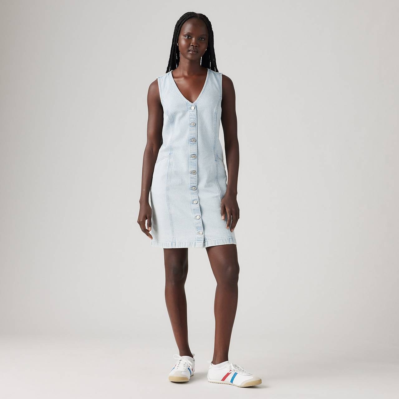 Sleek with a little bit of structure, our Vianna Vest Dress is an easy grab-and-throw-on. We designed it with a V-neckline, a classic button-up front and an easy above-the-knee length. - An easy grab-and-throw-on dress - Cut with a form-flattering fit - With a classic button-up front Style # 001WL0000 Color: Never Going To Change - Light Wash How it Fits - Slim fit Composition & Care - 100% Cotton - Denim - V-neck - Sleeveless - Machine wash cold, Do not bleach, Tumble dry medium, Warm iron if needed, Dry cleaning possible, Wash inside out with like colors - Made in Bangladesh