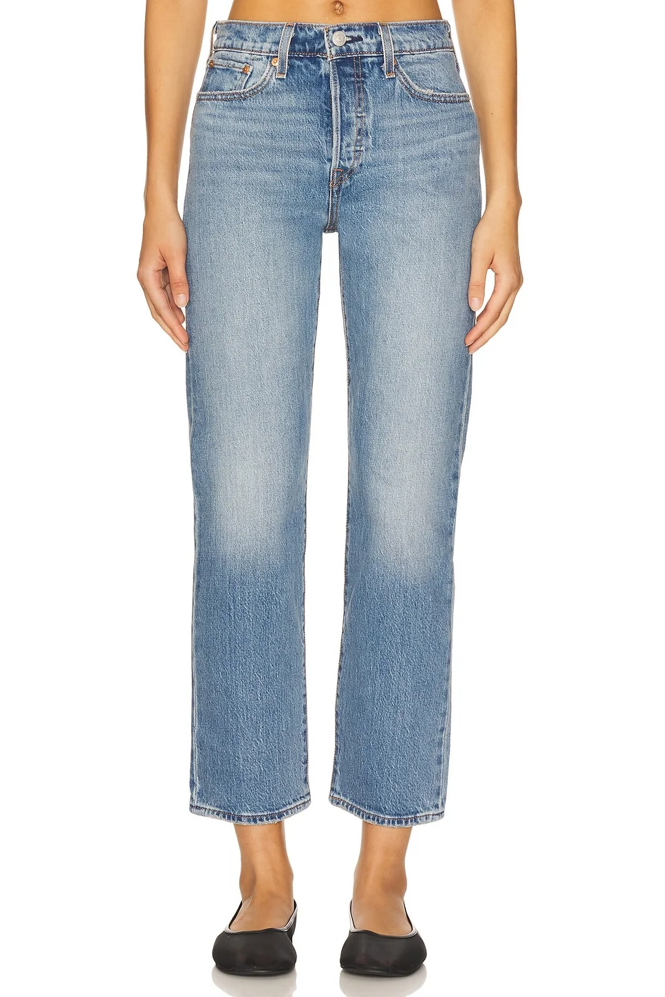 - 99% cotton 1% elastane - Machine wash - Button fly closure.5-pocket design - Intentional fading and light whiskering - Intentional distressing - Heavyweight denim fabric.16" at the knee narrows to 14" at the leg opening - Revolve Style No. LEIV-WJ482 - Manufacturer Style No. 34964-0249