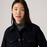 Elevate your outerwear game with the Levi's® Women's Wool Blend Raglan Sleeve Shirt Jacket, where comfort meets classic. Crafted from a warm and durable wool blend, this shirt jacket offers a variety of timeless plaid patterns and a solid color option. The relaxed raglan sleeves offer effortless movement and a laid-back silhouette, while the full button-zipper front closure and flap chest pockets add a touch of rustic charm. Whether layered over a tee or a chunky knit, this versatile piece is your go-to for crisp mornings and cool evenings alike. - Classic laydown collar for timeless wear - Button front closure - Two lower welt pockets and two chest button pockets - Soft wool blend exterior makes for a comfortable and warm everyday wear Style # 005SG0003 Color: Navy - Blue How it Fits - Relaxed Fit - Long sleeves Composition & Care - 100% Polyester - Polyester - Machine wash cold with like colors on delicate cycle. Use only non-chlorine bleach when needed. Tumble dry low. Cool iron if necessary - China