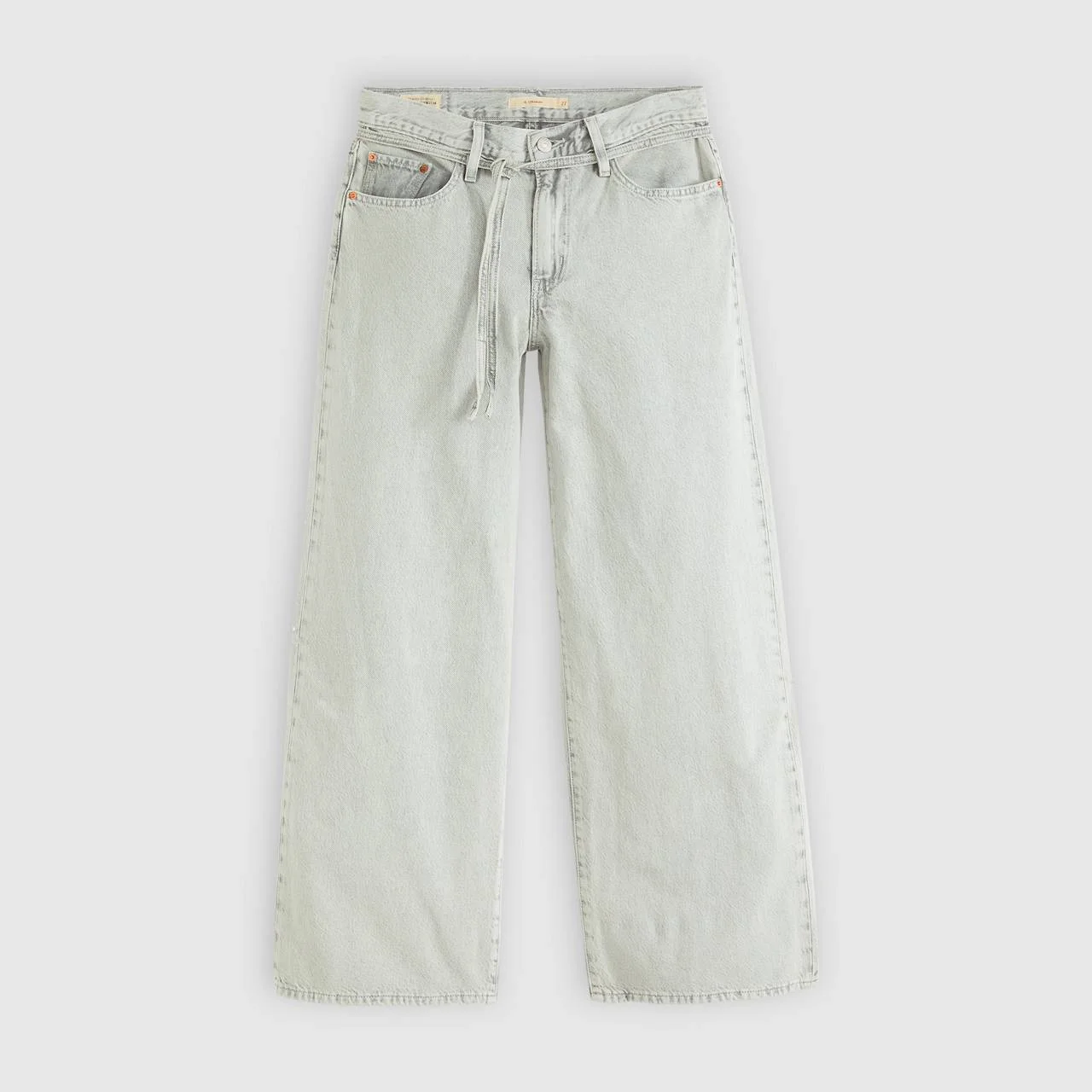 We took an oversized baggy cut, a wider straight leg and an adjustable rise and rolled it into these XL Straight jeans. Then, we topped it off with an adjustable tie waistband for added versatility. - Easy, baggy pants - Cut with an oversized fit - Cinch them up to wear them as a high or mid rise - With a tie waistband - Made with classic, non-stretch denim - For this fit, we recommend sizing up in length Style # A87010040 Color: Corporate Haze - Grey How it Fits - Loose Through Hip And Thigh - Mid rise: 10 5/8" - Straight leg - Inseam: 31",Leg opening: 24",Measurements based on size 27 waist Composition & Care - 100% Cotton - Denim - Non-Stretch - Zip fly - 5-pocket styling - Imported