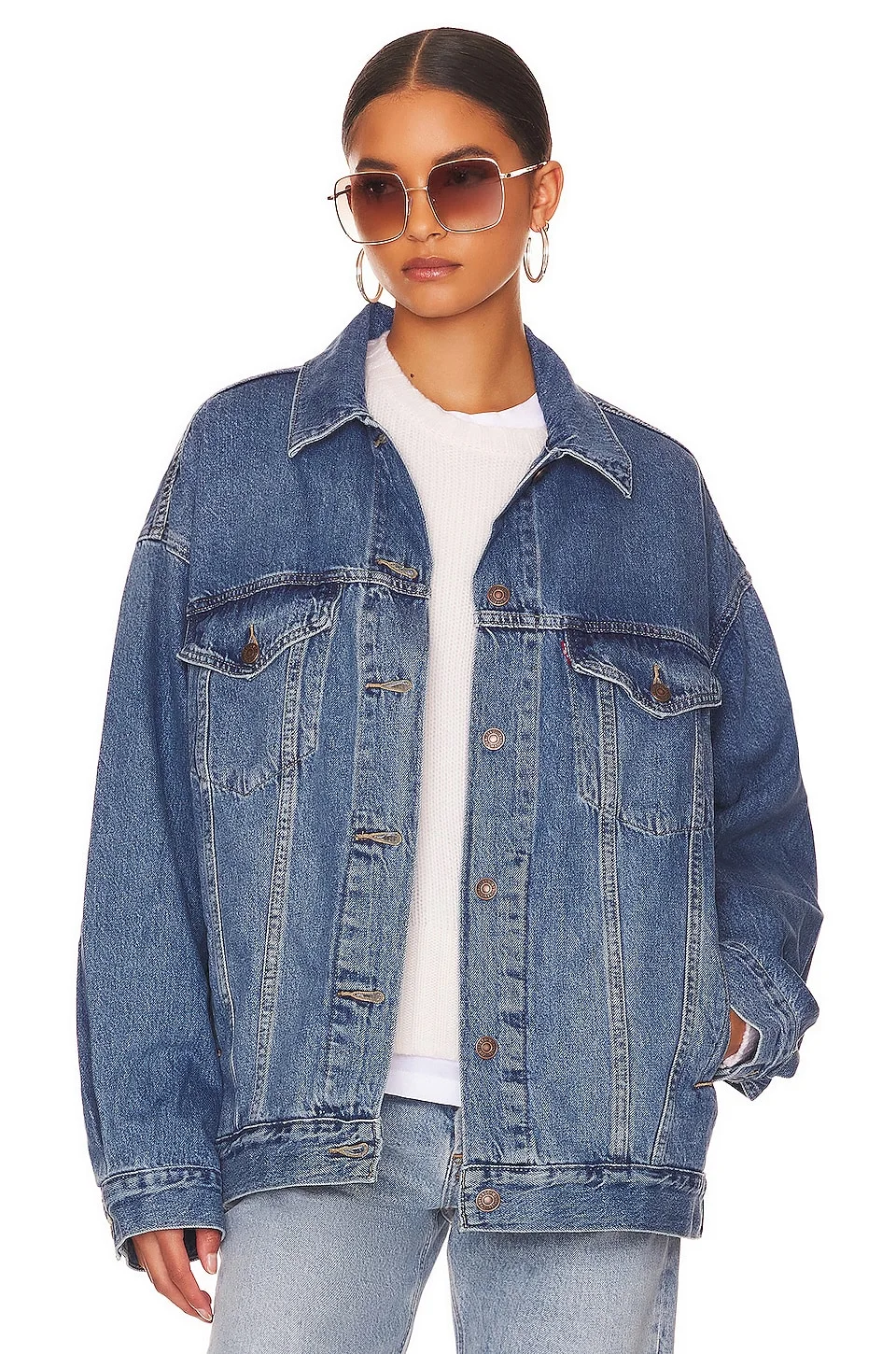 - 79% cotton 21% lyocell - Made in Cambodia - Machine wash - Front button closure.4-pocket design - Button cuffs - Midweight denim fabric - Revolve Style No. LEIV-WO68 - Manufacturer Style No. A3472-0003