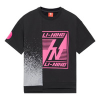 Li-Ning Pattern Printing Loose Round Neck Short Sleeve 'Black' AAES011-2