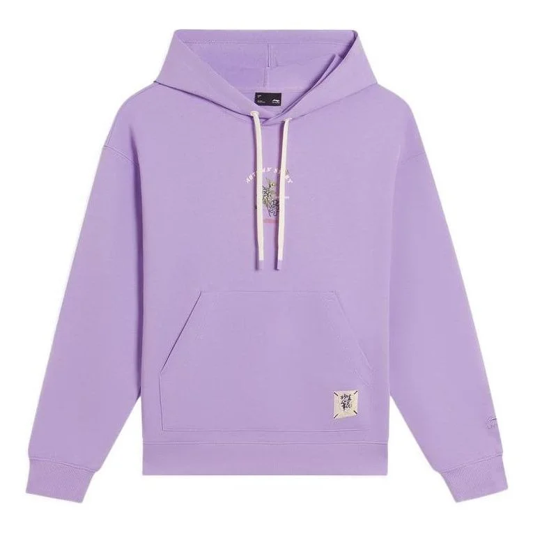 (WMNS) Li-Ning Floral Embroidered Logo Hoodie 'Purple' AWDS920-2