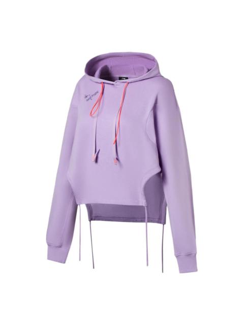 (WMNS) Li-Ning Lifestyle Casual Fashion Floral Hoodie 'White Purple' AWDS920-3