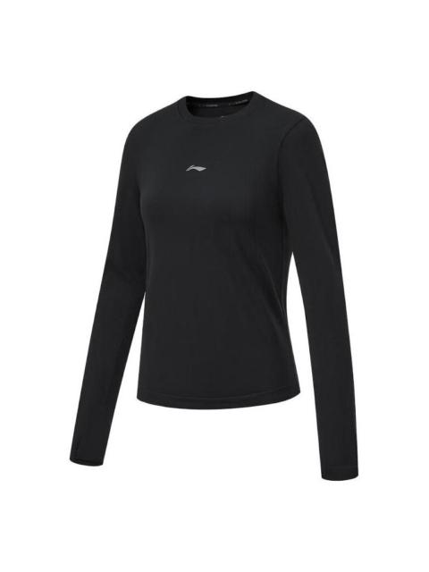 (WMNS) Li-Ning Small Logo Running Long Sleeve T-shirt 'Black' ATLT082-1