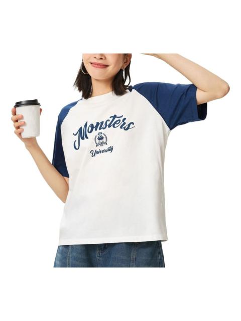 (WMNS) Li-Ning x Disney Monsters University Graphic T-shirt 'Cream White Navy' AHSU488-1