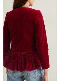 EXCLUSIVE AT NET-A-PORTER. The deep red of LIBEROWE's jacket is simply hypnotic thanks to the way the velvet holds the color - why not amplify the effect with a lipstick in the same shade? Tailored in London using traditional techniques, it has a gathered peplum and welt pockets. The fabric-wrapped buttons are covered by a local maker with a family business. This product was Locally Made. Find out more about NET SUSTAIN here.