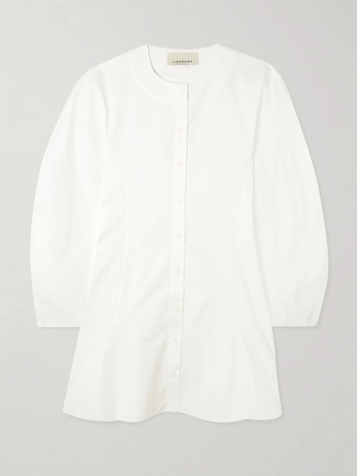 You'll make the most out of LIBEROWE's shirt dress in the warmer months. Cut from breathable cotton-poplin, it has curved balloon sleeves and falls to a flared mini hem, complementing the volume up top. Responsible Craftsmanship. This product promotes artisanal skills and a brand that invests in communities and adheres to fair-trade principles. Find out more about our NET SUSTAIN criteria here.