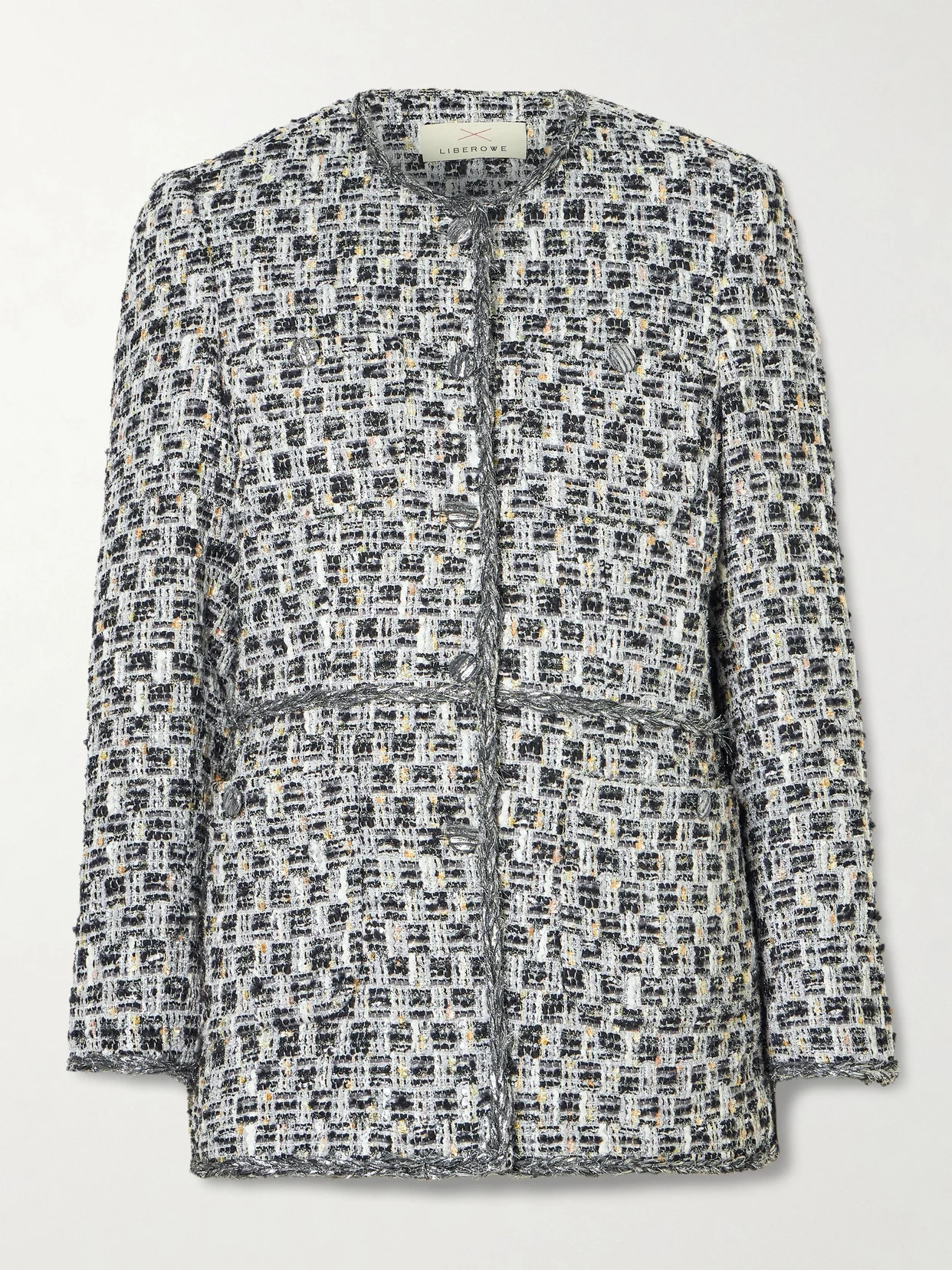Elegantly glamorous, LIBEROWE's 'Dya' blazer has a sense of occasion to it. It's tailored from glistening tweed for a slim fit and has braided trims along the edges.