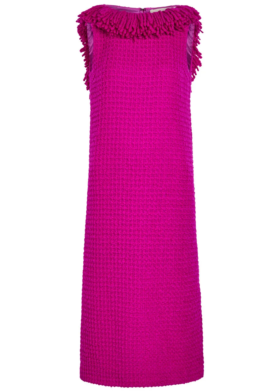 Info & Care Liberowe wool dress Shaggy-knit trims, round-neck, back vent, fully lined Concealed hook and zip fastening at back 100% wool; lining: 100%;polyester Dry clean Size & Fit Length shoulder to hem: 46 inches/ 116cm Midweight Slim fit Model is 5'9"/ 175cm and wears a size small