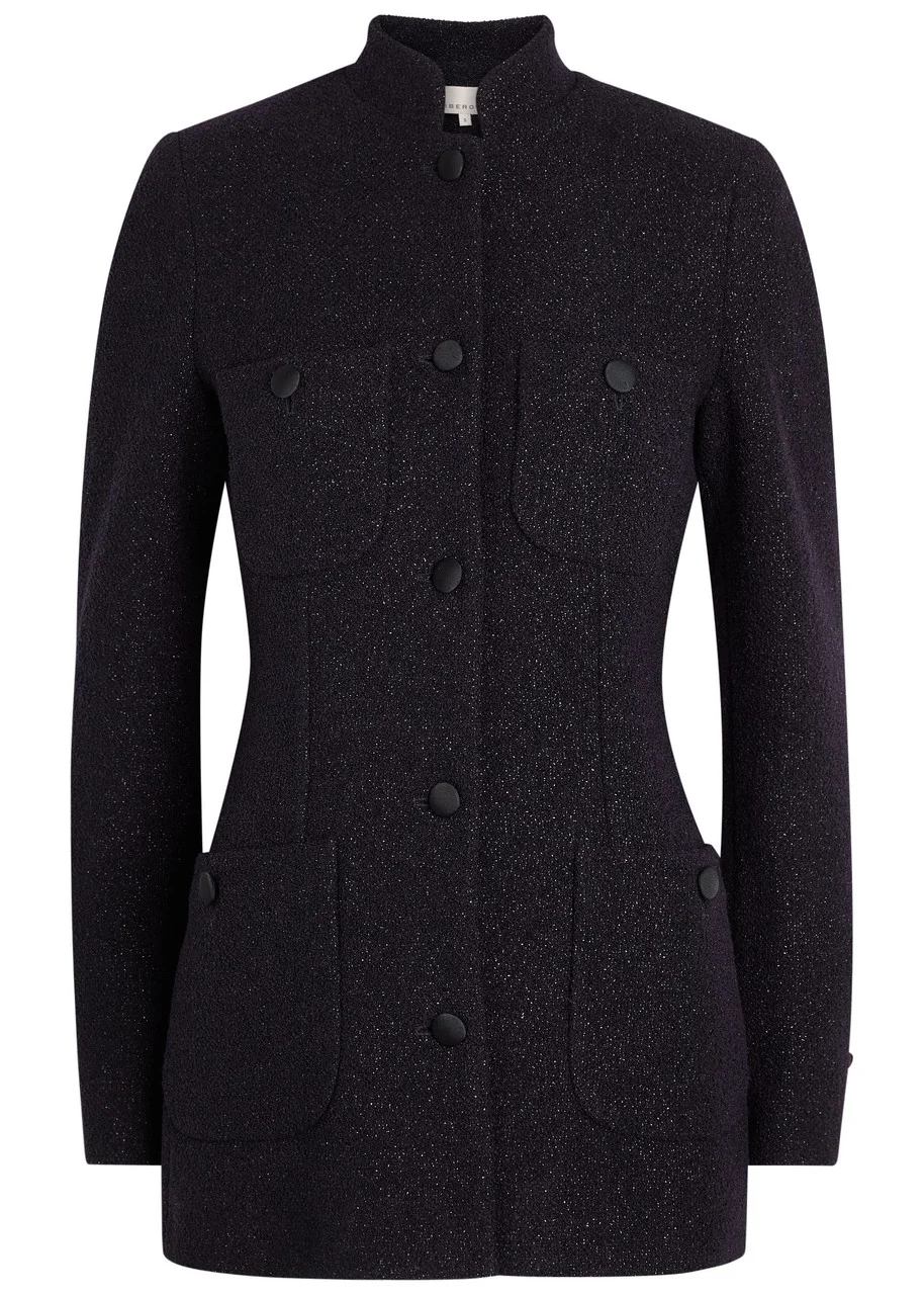 Info & Care Liberowe tweed jacket Metallic weave, stand collar, padded shoulders, button-fastening cuffs, four button-fastening patch pockets, fully lined Button fastenings through front 58% wool, 42% polyamide; lining: 52% cupro, 48% cupro Dry clean Size & Fit Length shoulder to hem: 29 inches/ 73.5cm Midweight Fitted Model is 5'10"/ 178cm and wears a size small