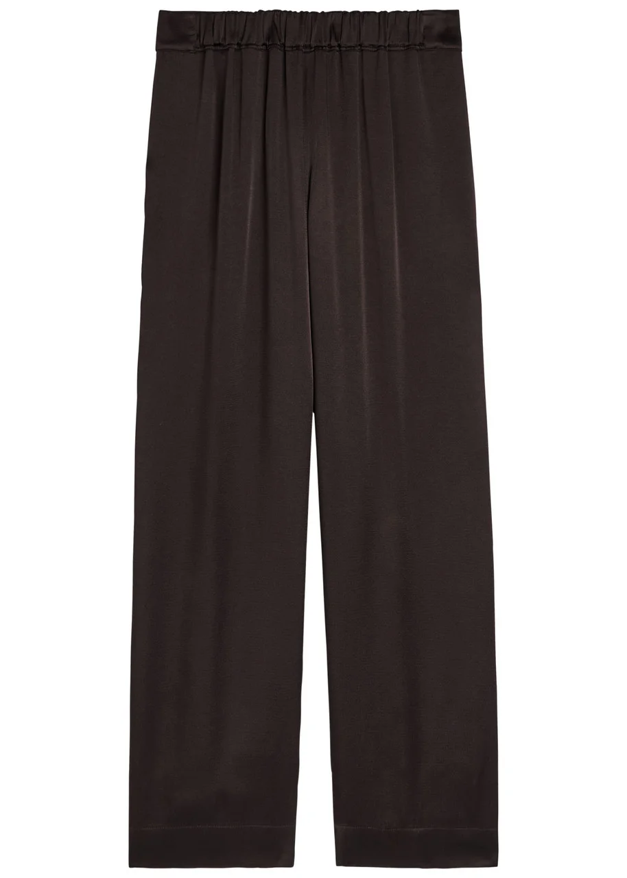 Info & Care Liberowe;satin trousers Elasticated waistband, side slip pockets Pull on 77%;acetate, 23% viscose Dry clean Size & Fit Inside leg length: 30 inches/ 76cm Midweight Wide-leg cut Model is 5'10"/ 178cm and wears a size small;