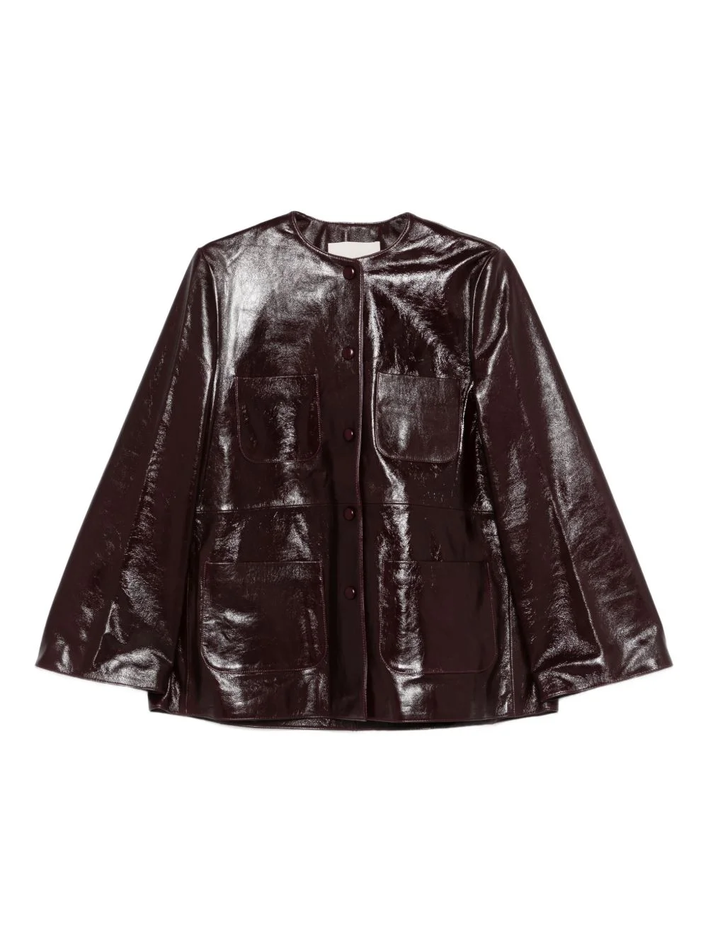 pocket jacket Highlights - Burgundy - Front patch pockets - Round neck - Front button fastening - Long sleeves Imported Composition Outer: Calf Leather 100% Lining: Viscose 100% SIZE & FIT Model measurements Height 5 ft 11 in(1.8 m) Bust/Chest 32.28 in(82 cm) Hips 36.22 in(92 cm) Waist 25.19 in(64 cm) Washing instructions Read Manufacturer Guidelines