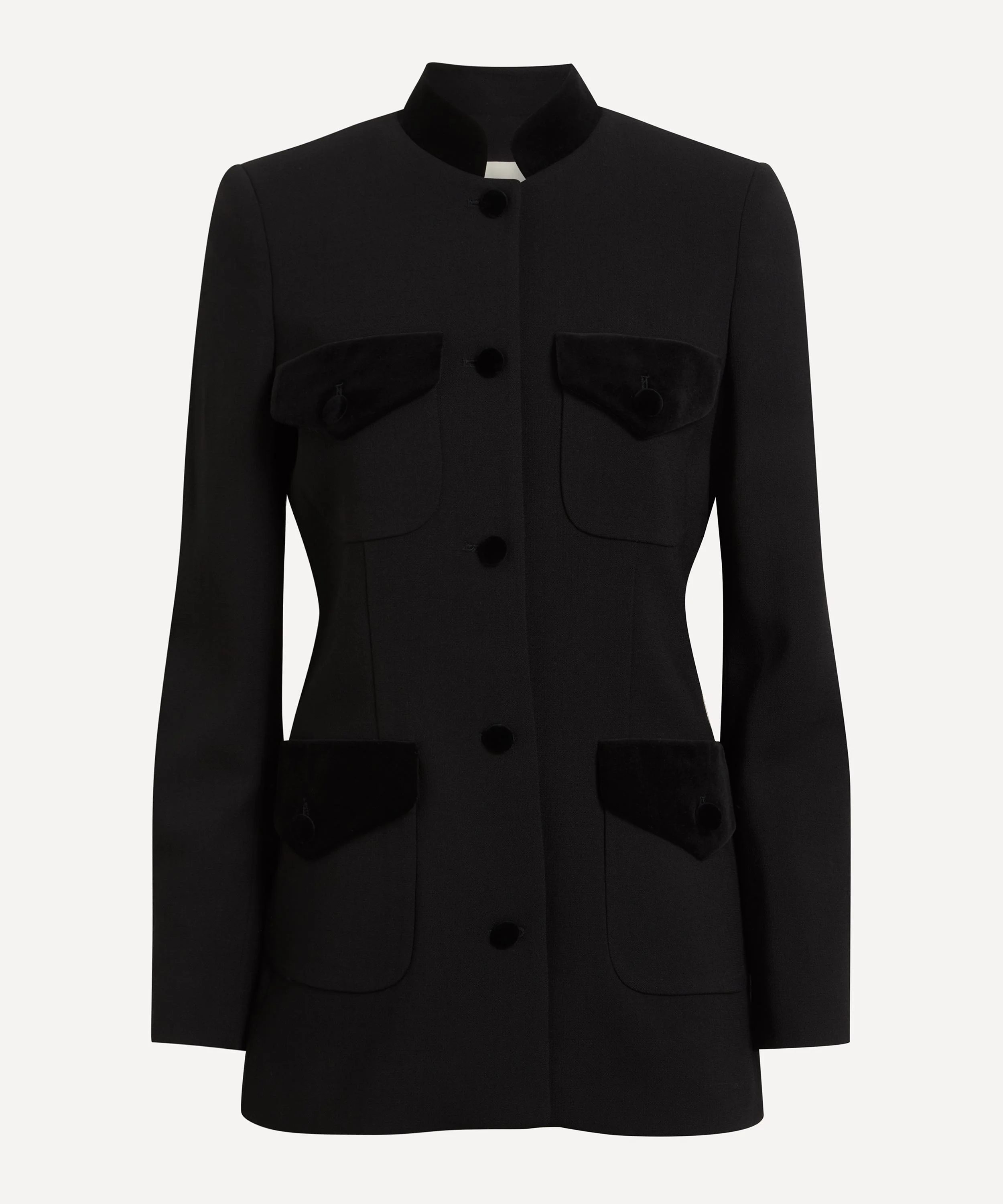 DETAILS Raja signature jacket True to size Five velvet buttons closure Four flap pockets Five buttons at cuff Tailored slim fit Internal shoulder pads Italian wool Mid-weight, non-stretchy fabric Made in London SIZE & FIT Model is 180cm/5'11"; Chest: 87cm; Waist: 65cm; Hip: 93cm and wears a size S COMPOSITION & CARE Body - 95% Wool; 5% Elastane Pockets – 100% Cotton Velvet Lining – 52% Viscose; 48% Curpo Dry clean