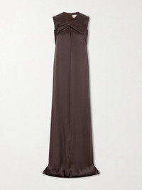 LIBEROWE's 'Siena' gown is a lot like a blank canvas, letting you play with accessories and jewelry. Made locally to the brand, it's cut from satin-crepe with an artful twist below the neckline that lends textural interest. We love the chic opening at the lower back, too. Responsible Craftsmanship. This product promotes artisanal skills and a brand that invests in communities and adheres to fair-trade principles. Find out more about our NET SUSTAIN criteria here.