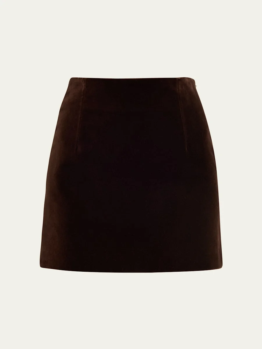 Liberowe skirt is crafted of soft velvet Can be styled with the matching velvet peplum jacket High waist Mini length Aline silhouette Invisible side zip Cotton Lining: Viscose Dry clean Made in United Kingdom