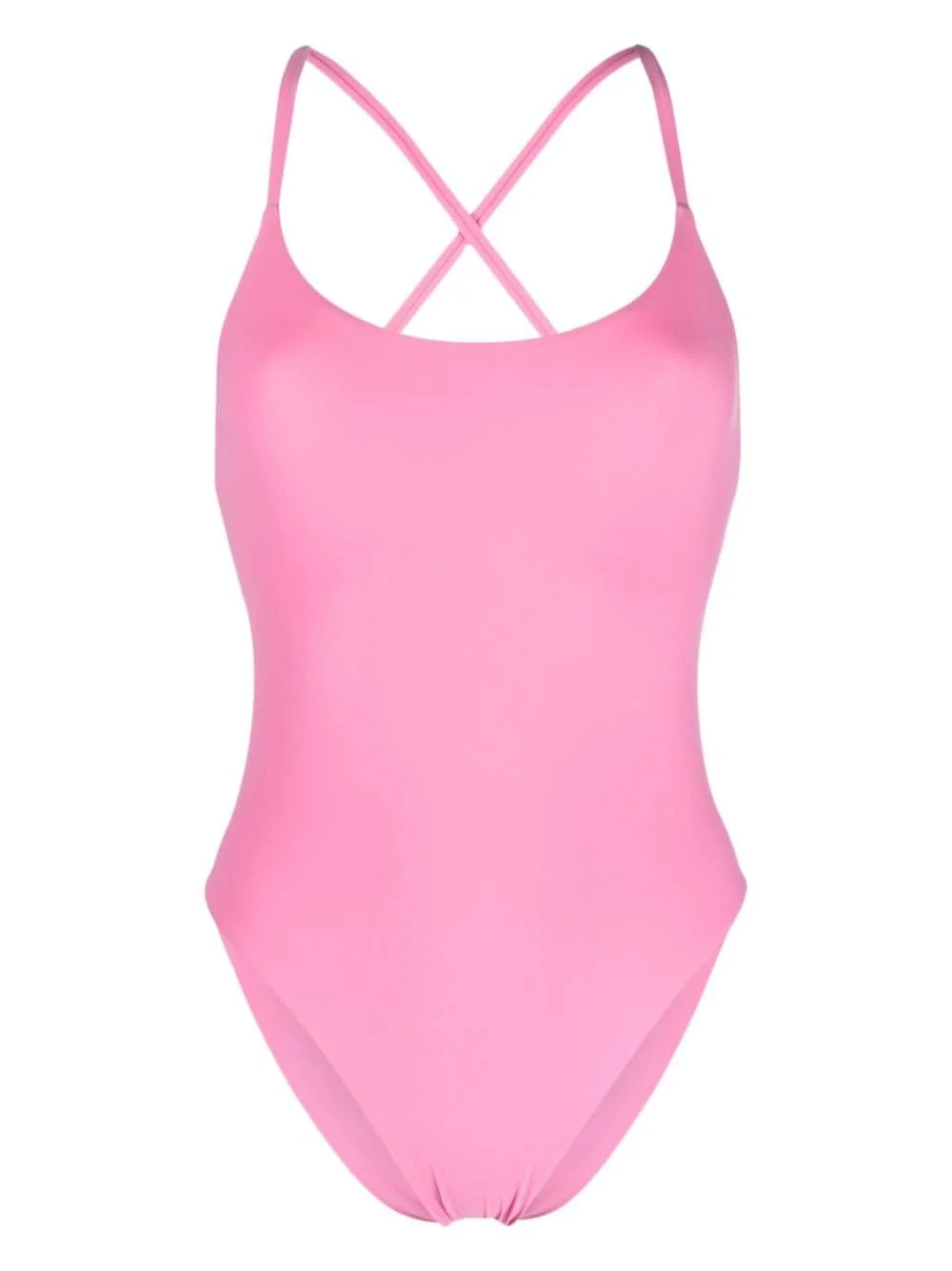criss-cross straps high-cut swimsuit Highlights - Flamingo pink - Stretch-design - Scoop neck - Spaghetti straps - Rear criss-cross straps - Open back - High cut - Be mindful to try on swimwear over your own garments. Made in Italy Composition Polyamide 68%, Elastane 32%