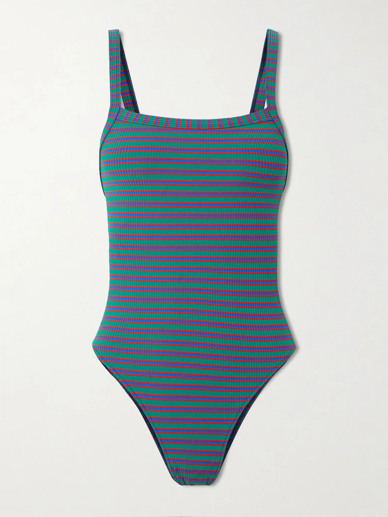 Make a colorful splash in Lido's 'Trentanove' swimsuit. It's cut from ribbed stretch fabric and has an elegant square neckline and coloful stripes.