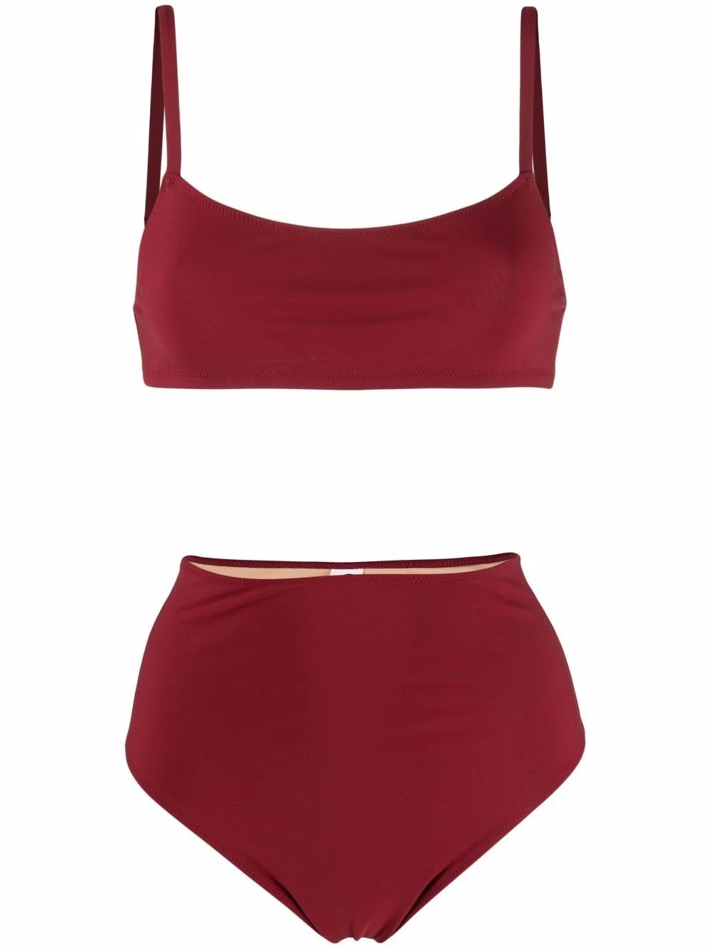 high-waisted bikini pomegranate red set of two stretch-design Top: square neck spaghetti straps Bottoms: high-waisted Be mindful to try on swimwear over your own garments. Made in Italy Composition Polyamide 68%, Spandex/Elastane 32% Washing instructions Dry Clean Only
