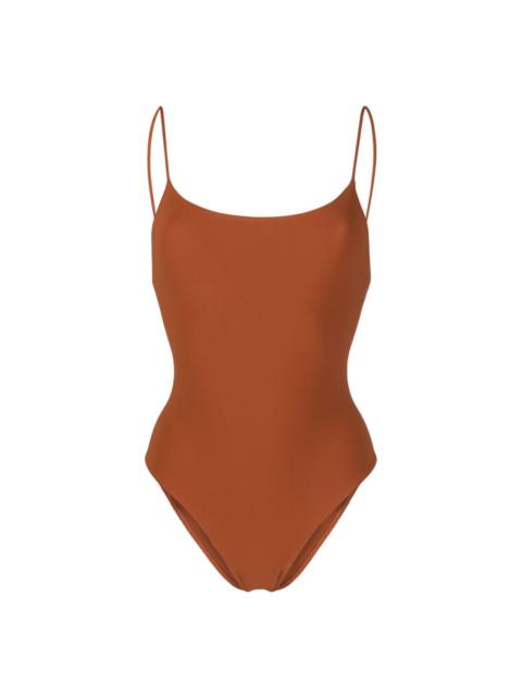 Trentasei spaghetti-strap swimsuit Highlights - Terracotta brown - Stretch-design - Scoop neck - Spaghetti straps - Square open back - Be mindful to try on swimwear over your own garments. Made in Italy Composition Polyamide 68%, Elastane 32%