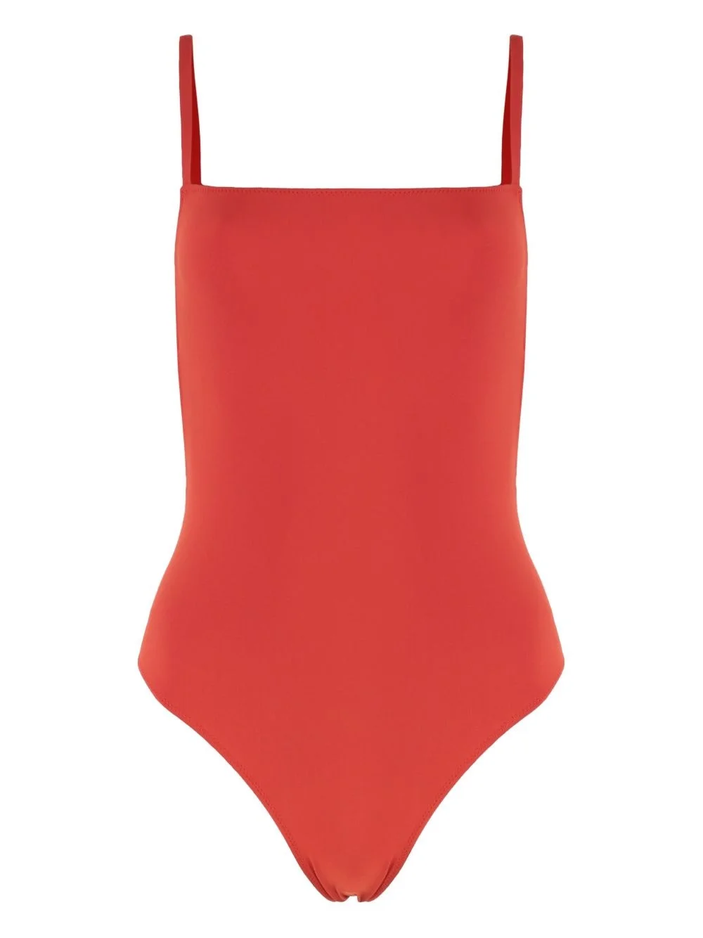 Tre square-neck swimsuit Highlights - Red - Square neckline - Thin straps - Low back - Be mindful to try on swimwear over your own garments. Made in Italy Composition Polyamide 73%, Elastane 27% Washing instructions Read Manufacturer Guidelines