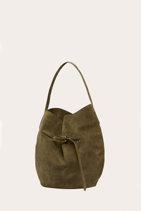 BELTED BUCKET BAG LARGE SAGE SUEDE