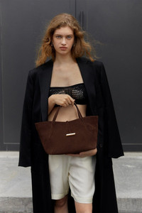 PETITE PENNE TOTE SUEDE DARK BROWN