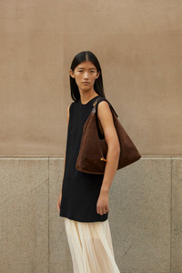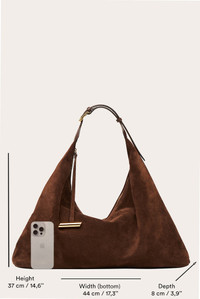 The Pillow Hobo is our new oversized soft and slouchy shoulder bag for your everyday needs. This latest addition to the Pillow family features an adjustable buckle for comfortable wear and is adorned with statement penne hardware. Roomy enough to fit a 13" laptop. - Hardware with gold finish - Internal zip pocket - Dark brown cow suede - Certified Silver Rated Suede by - LWG - Made in Italy DIMENSIONS H: 37 x W: 44 x D: 8 cm H: 14,6 x W: 17,3 x D: 3,1 in Handle drop: 26 cm / 10,2 in