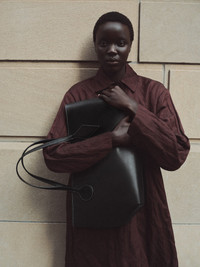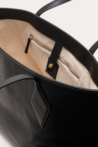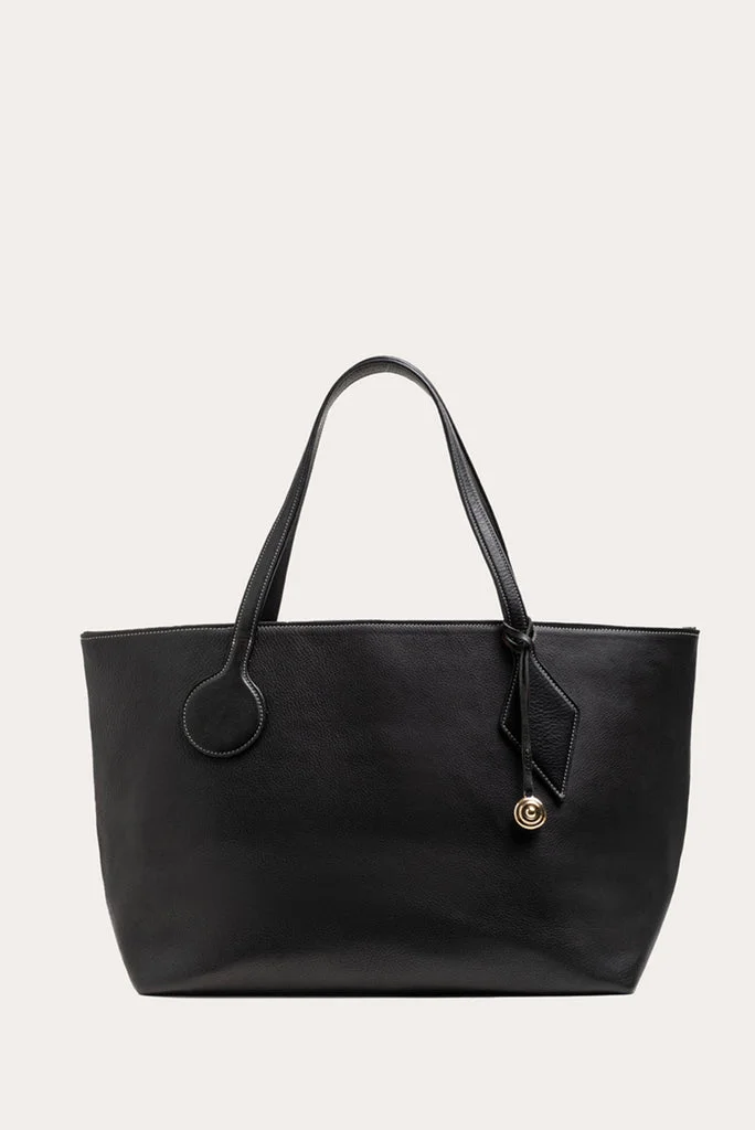 This updated take on the popular Sprout Tote is fitted with longer asymmetrical straps for comfortable shoulder carry. A new removable golden charm adds a touch of gleam to the streamlined design. - Snap button closure - Internal zip pocket - Removable gold bag charm - Black - Certified Calf Leather by - LWG - Made in Italy DIMENSIONS Fits a 13-15" laptop H: 26 x W: 56 x D: 25 cm H: 10,2 x W: 22 x D: 9,8 in Handle drop: 19 cm / 7,5 in