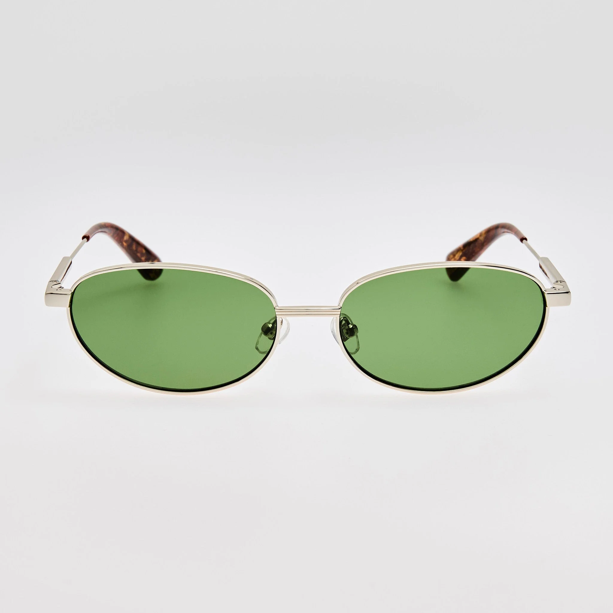 A softly oval frame, the Alba is crafted from silver tone stainless steel with wood temple tips. Paired with green lenses and adjustable nose pads for a luxurious yet comfortable wear. Details -Country of origin: Japan -100% UV protected lenses -Stainless Steel Frame -sku:JAC120C2SUN Size & Fit 63mm lens width 12mm bridge width 135mm temple length