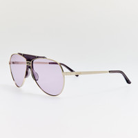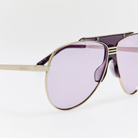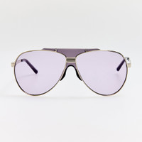 The Amelia aviator frame is crafted from stainless steel in silver. Fitted with purple lenses offering full UV protection. The frame features contrasting purple sculpted nose pads for a precise and comfortable fit. This is a collaboration with Milan - based fashion brand The Attico. The collection translates The Attico’s confident, feminine aesthetic into a range of refined sunglasses featuring vibrant hues, sculptural silhouettes, and modern attitude. Details -Country of origin: Japan -100% UV protected solid lenses -Acetate frame with acetate temples -Acetate Made in Italy -sku: ATTICO78C5SUN Size & Fit 63mm lens width 12mm bridge width 145mm temple length