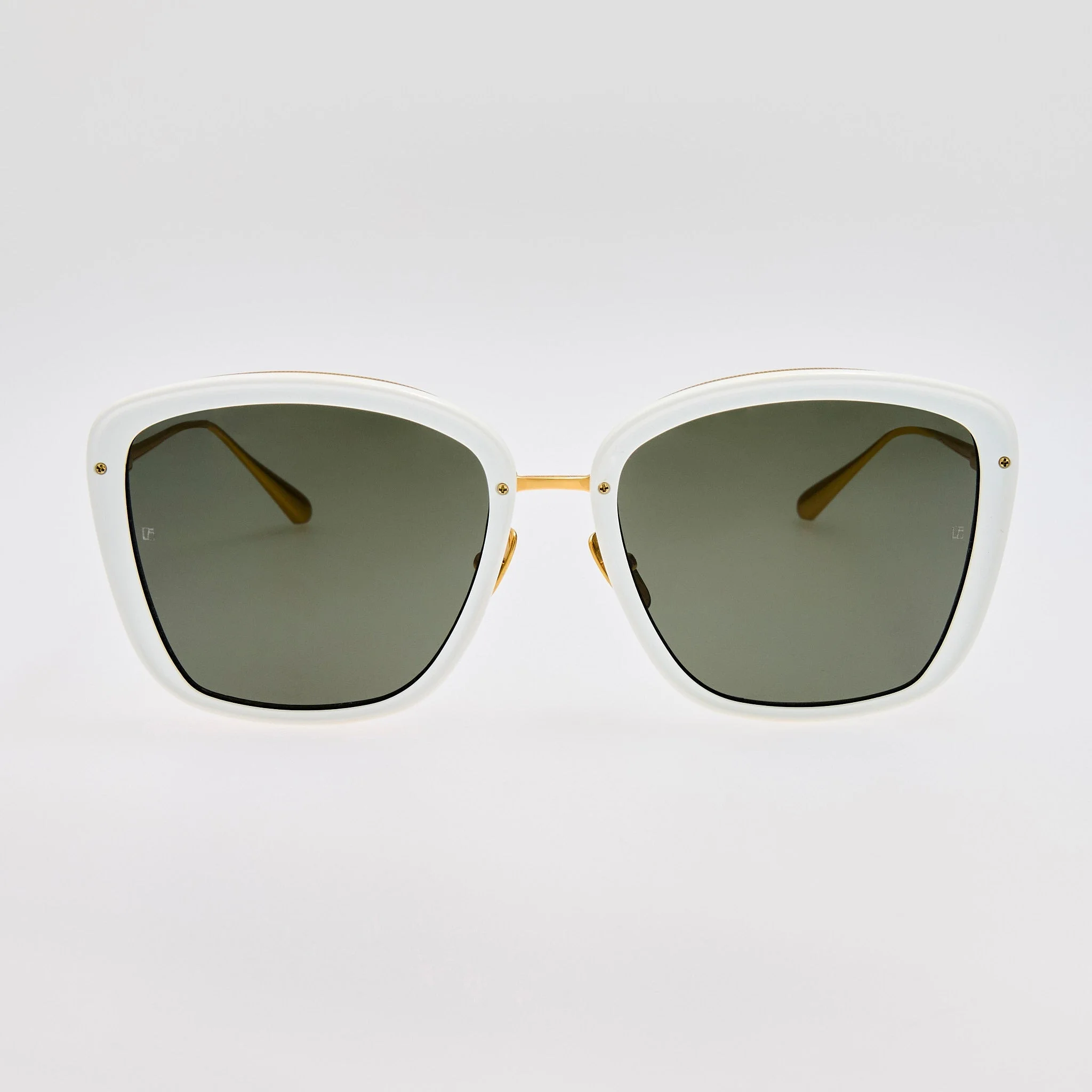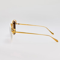 The Anais frame features a striking cat-eye silhouette crafted from a sophisticated combination of materials, including 22 carat yellow gold-plated pure Japanese titanium and Italian white acetate. Grey gradient lenses provide excellent UV protection. Sculpted adjustable nose pads enhance comfort and ensure a perfect fit, making this a luxurious and stylish sun frame. Details -Country of origin: Japan -100% UV protected lenses -Acetate frame with titanium temples -sku:LFL1592C2SUN Size & Fit 60mm lens width 20.5mm bridge width 146mm temple length