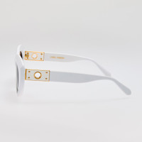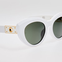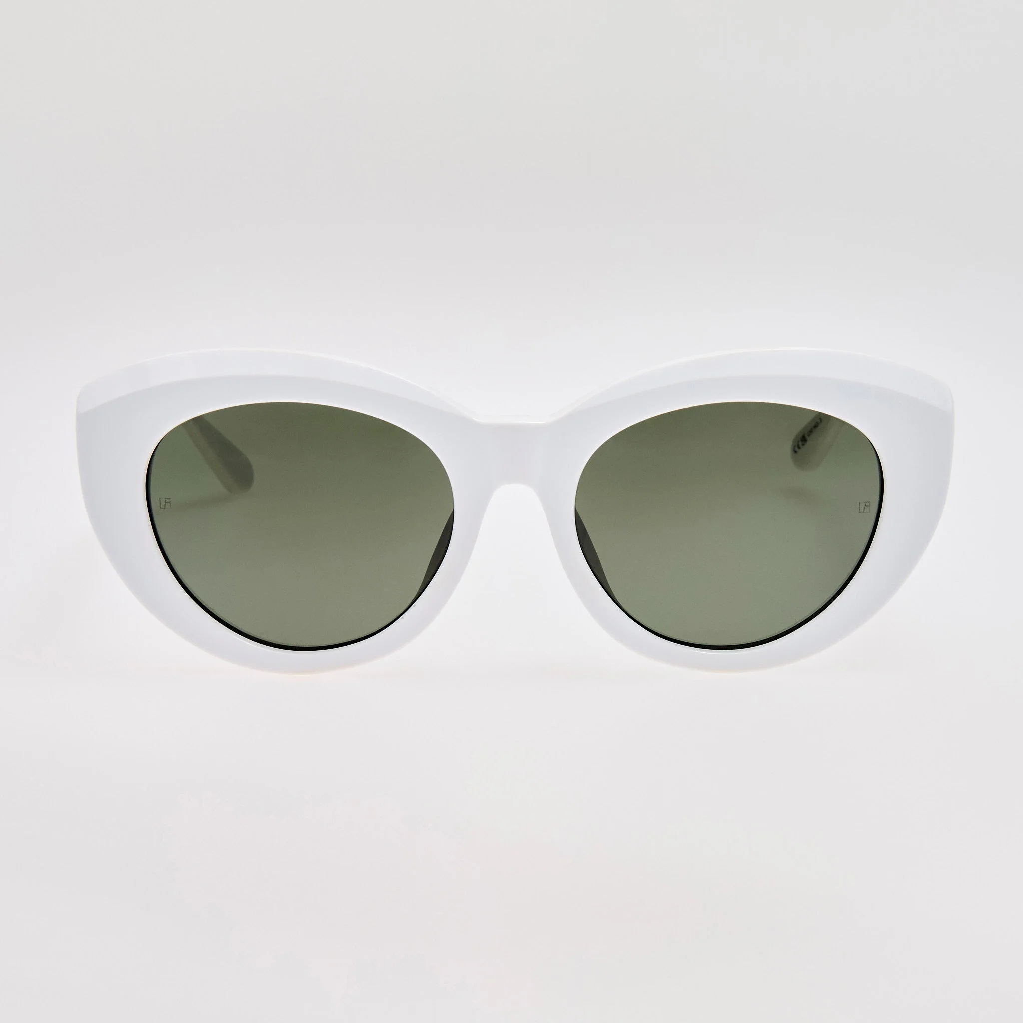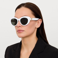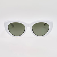 The Anna in white features a sophisticated cat eye frame crafted from high-quality Italian white acetate.The grey lenses provide excellent UV protection, and the addition of sculpted nose pads ensures maximum comfort and stability. Details -Country of origin: Japan -100% UV protected lenses -Acetate frame with acetate temples -sku:LFL1551C2SUN Size & Fit 55mm lens width 19mm bridge width 145mm temple length