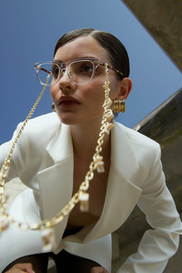 Inspired by strong architectural lines, these D-Frame optical glasses from the new Linda Farrow LINEAR collection are crafted from ash Italian hand polished acetate, ultra lightweight yellow gold titanium and fitted with tortoiseshell temples. Paired with the Gold Metal Chain With Cream Letters Details -Optical lens free from prescription -Acetate frame with acetate temples -Country of origin : Japan -sku: LF83AC2OPT Size & Fit 49mmlens width 20mm bridge width 145mm temple length