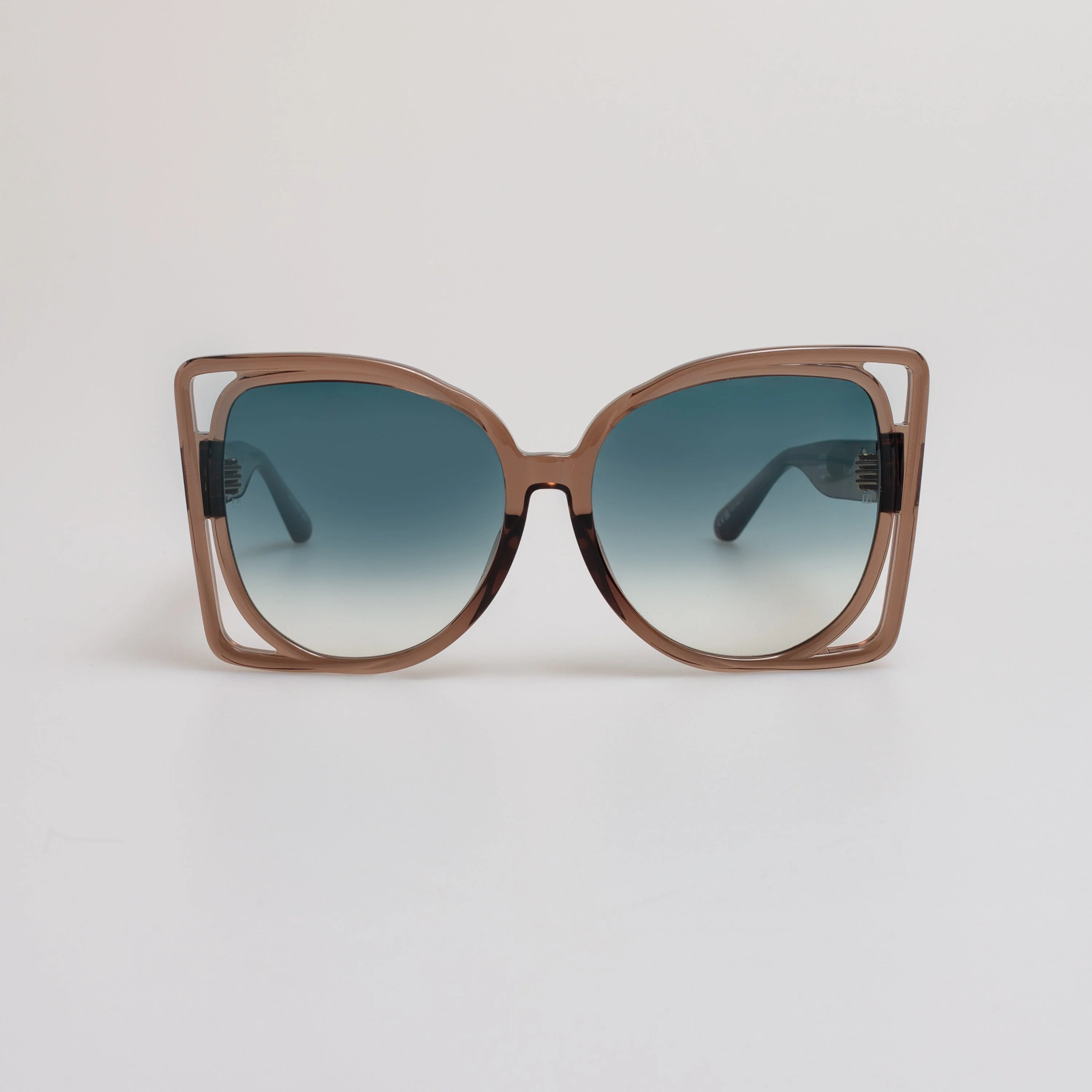 Using negative space to create intrigue the Astra sunglasses from the LINDA FARROW collection offer a statement look. Sculpted from brown acetate the oversized cat eye frame is cut away to give a lighter silhouette. The temple bears our signature 22 carat gold plated eyelet. Fitted with solid aqua lenses for UV protection. Details -Country of origin: Japan -100% UV protected solid lenses -Acetate frame with acetate temples -Acetate Made in Italy -sku:LFL1357C5SUN Size & Fit 61mm lens width 17mm bridge width 140mm temple length "