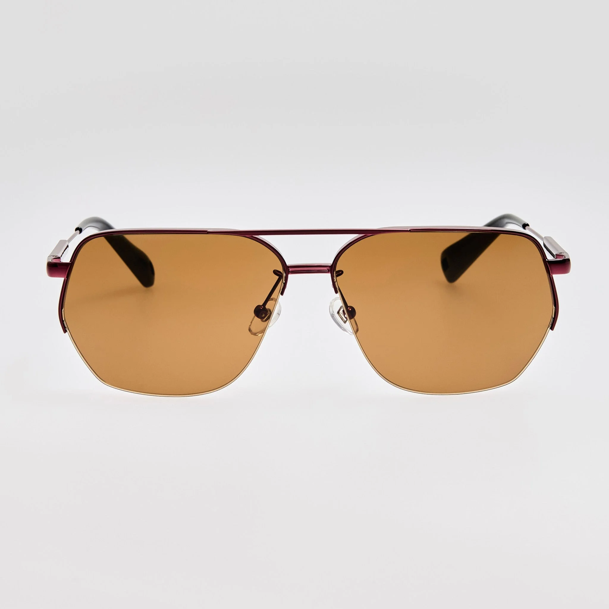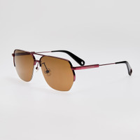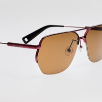 This Aviador silhouette reinterprets the classic aviator with a bordeaux stainless steel front and contrasting black temple tips. Brown lenses this frame is fitted with adjustable nose pads for a tailored, comfortable fit. Details -Country of origin: Japan -100% UV protected lenses -Stainless Steel Frame -sku:JAC67C6SUN Size & Fit 63mm lens width 12mm bridge width 135mm temple length