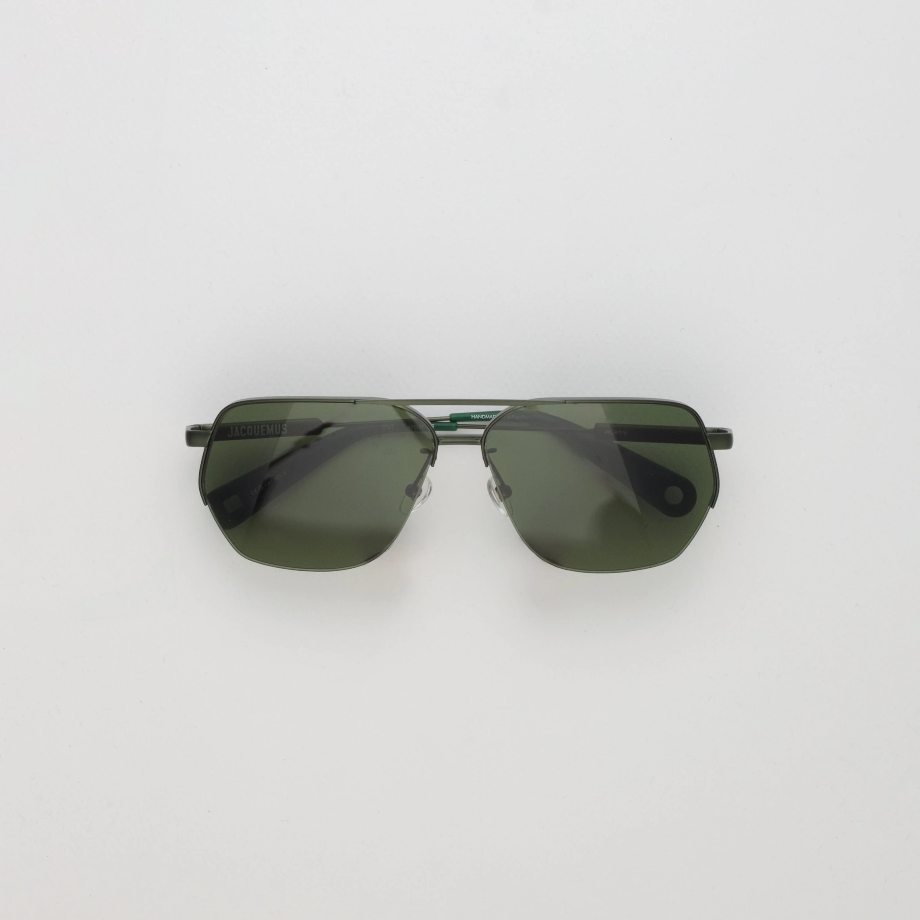 Introducing the Aviador sunglasses from the Jacquemus Spring/Summer '25 collection "La Croisiere". These angular sunglasses are craft from matt green metal are paired with green lenses. Details -100% UV protected solid lenses -Stainless Steel Frame -sku:JAC67C4SUN Size & Fit 64mm lens width 12mm bridge width 145mm temple length "