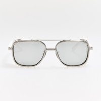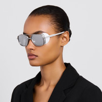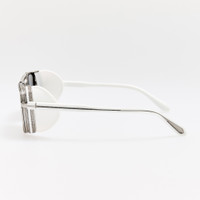 Introducing the Boyd Aviator frame from the Explorer collection. This frame is crafted from 22K white gold plated pure Japanese titanium. Fitted with platinum lenses offering full UV protection. The frame features adjustable titanium nose pads that offer a tailored fit by allowing bespoke positioning for enhanced comfort. This style includes removable black rubber side shields and matching temple covers, adding functional protection and striking detail. Each component is interchangeable and available in additional colour options, allowing you to personalize your look and adapt to different environments and styling preferences. Details -Country of origin: Japan -100% UV protected solid lenses Titanium frame with titanium temples -Titanium Made in Japan -sku: LFL1630C3SUN Size & Fit 55mm lens width 18mm bridge width 145mm temple length