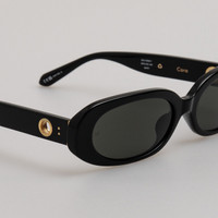 The Cara sunglasses from the LINDA FARROW collection emanate a chic 90s aesthetic. The highly polished oval frames are formed from recycled black acetate with sculpted nose pads for a comfortable fit. Details -100% UV protected solid lenses -Acetate frame with acetate temples -Made in Japan -sku:LFL1252C1SUN Size & Fit 59mm lens width 18mm bridge width 140mm temple length