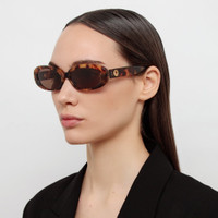The Cara sunglasses from the LINDA FARROW collection emanate a chic 90s aesthetic. The highly polished oval frames are formed from rich tortoise shell acetate with sculpted nose pads for a comfortable fit. Details -100% UV protected solid lenses -Acetate frame with acetate temples -Made in Japan -sku:LFL1252C2SUN Size & Fit 59mm lens width 18mm bridge width 140mm temple length
