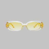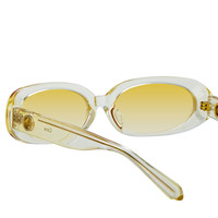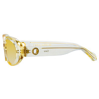 The iconic Cara Oval Sunglasses by LINDA FARROW return in polished translucent yellow acetate, featuring a light gold emblem at the temples to honor the brand’s heritage.